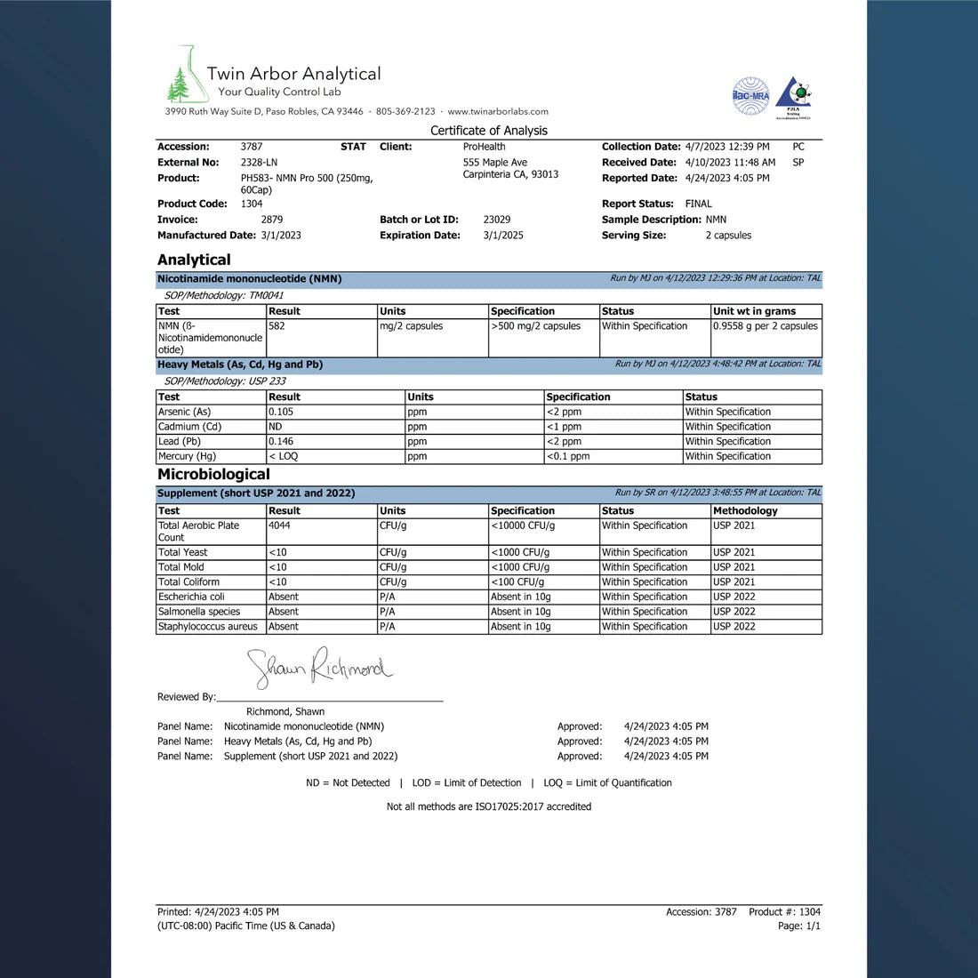 - Only Clincially-Proven NMN. ProHealth’s NMN is the only clinically-proven NMN to boost NAD+ levels in a peer-reviewed, double-blind, placebo-controlled, published, clinical study. Results of the study indicated a 38% increase in NAD+ levels and 12-year reversal in biological age.