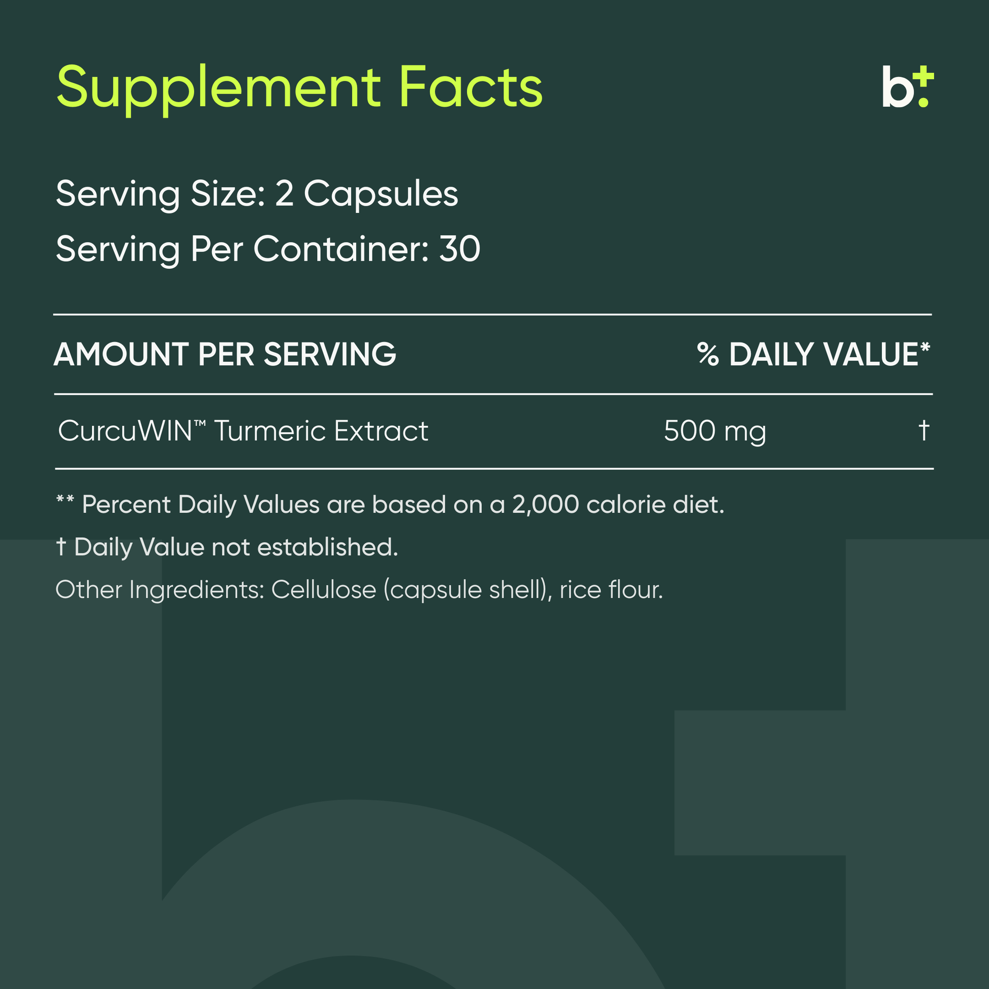 CurcuWIN™ Turmeric Extract (500mg per serving), Cellulose (capsule shell), Rice Flour