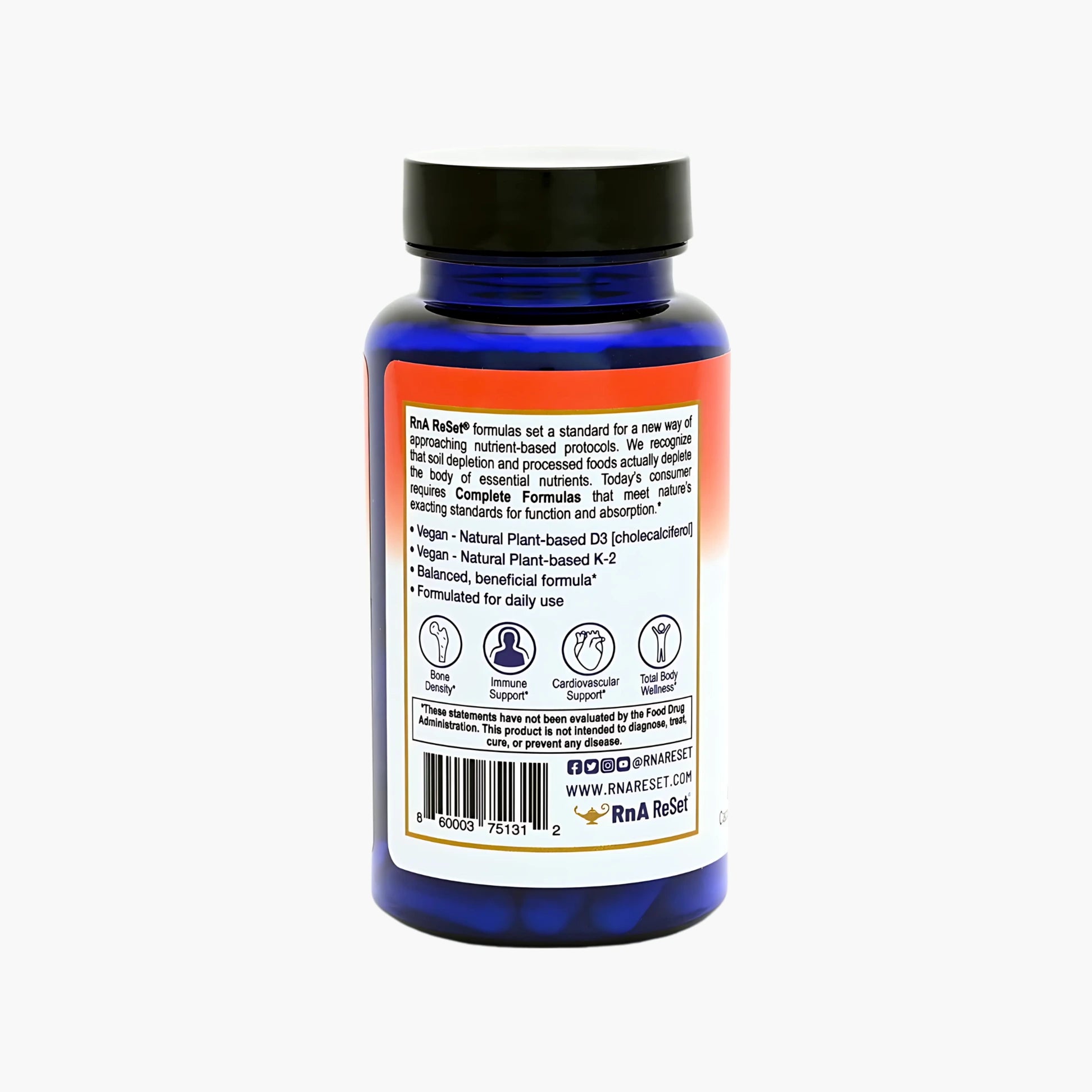 Vitamin D3 (from plant lichen), Vitamin K2-MK7 (from natto), RnA ReSet Barley Powder (GBSP), Silica, Vegetable Magnesium Stearate, Non-GMO Vegetable Cellulose (capsule shell)