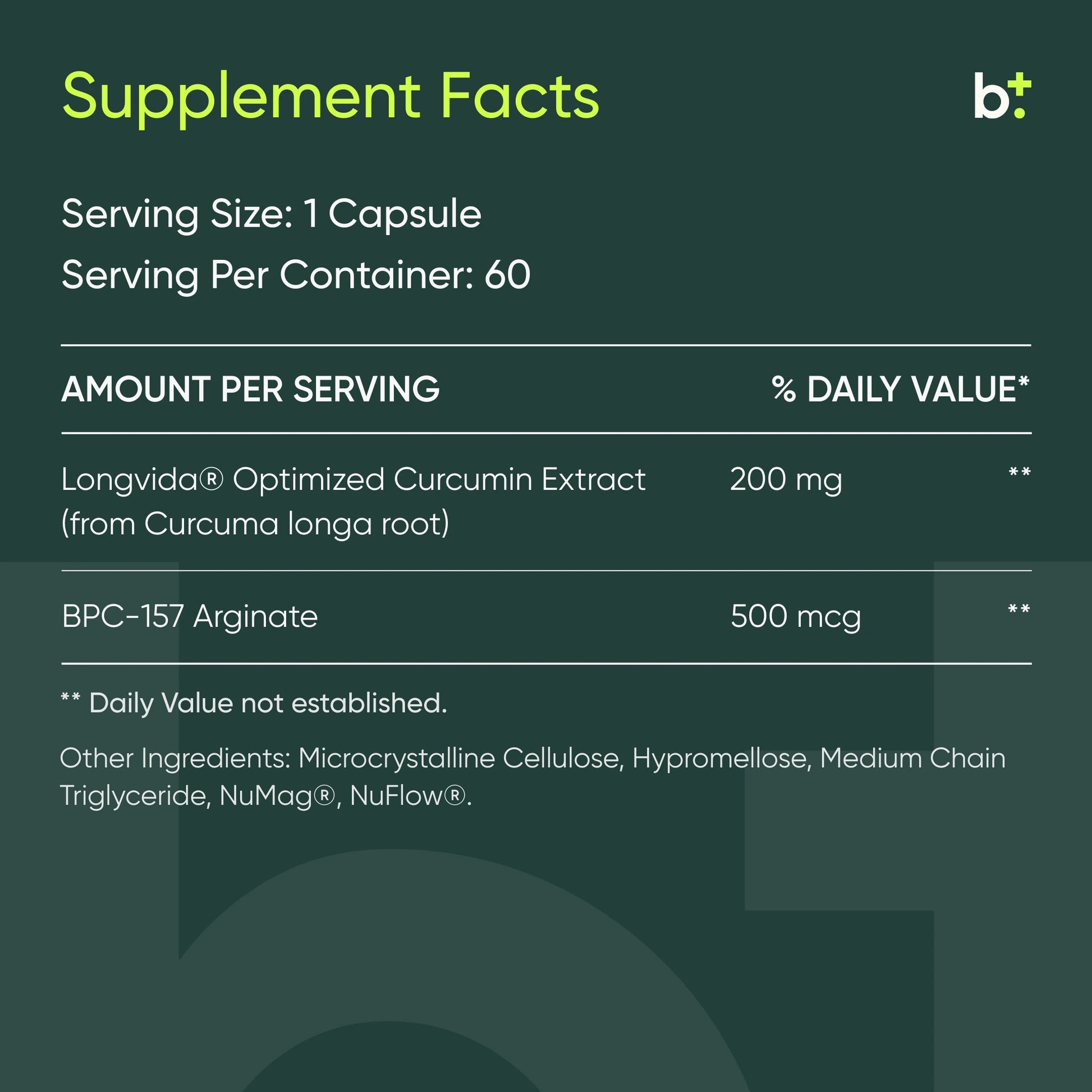 BPC-157 Arginate, Longvida® Optimized Curcumin, Vegetable Capsule, Rice Powder, Microcrystalline Cellulose