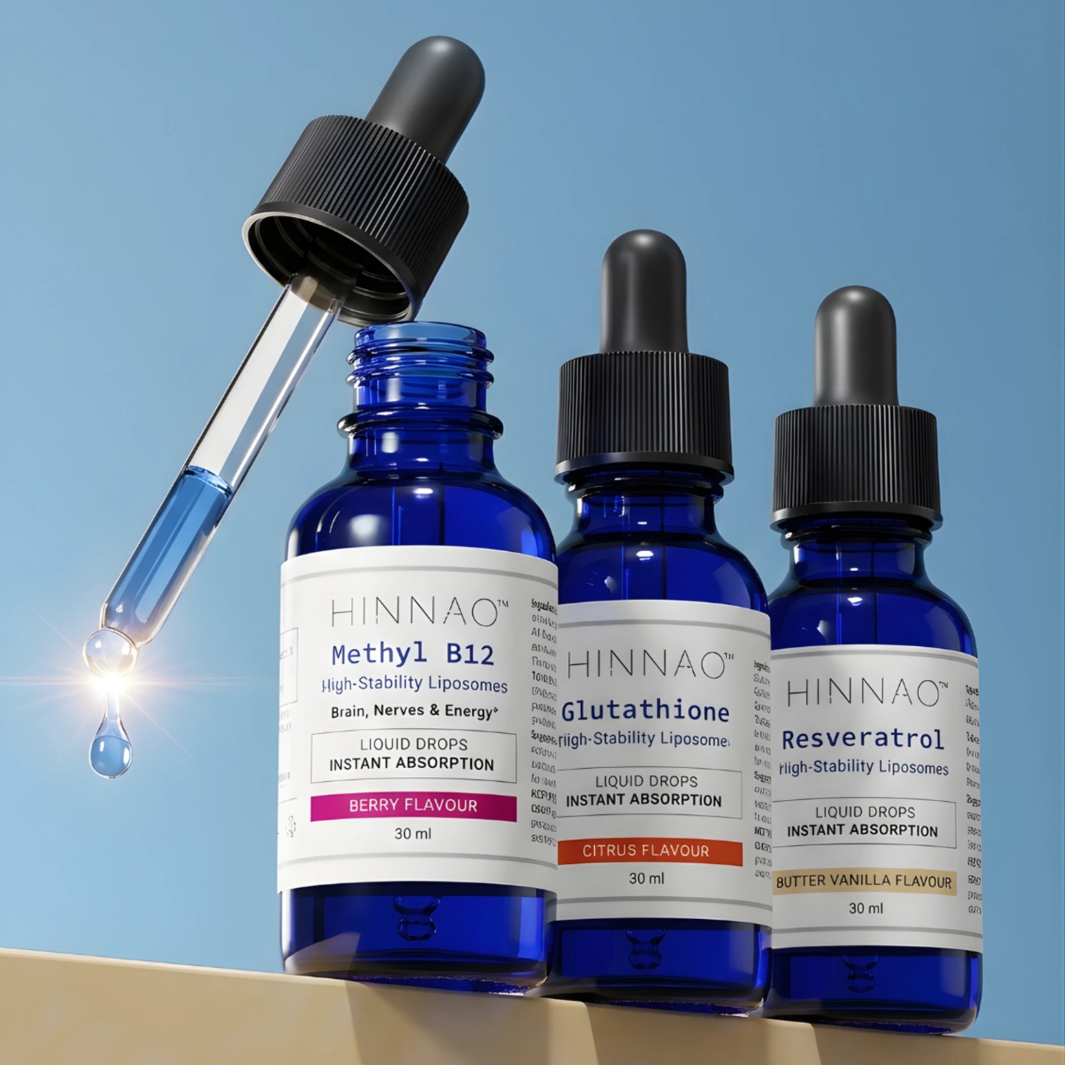 Hinnao uses patented high-stability liposomal technology that wraps glutathione in protective lipid particles.