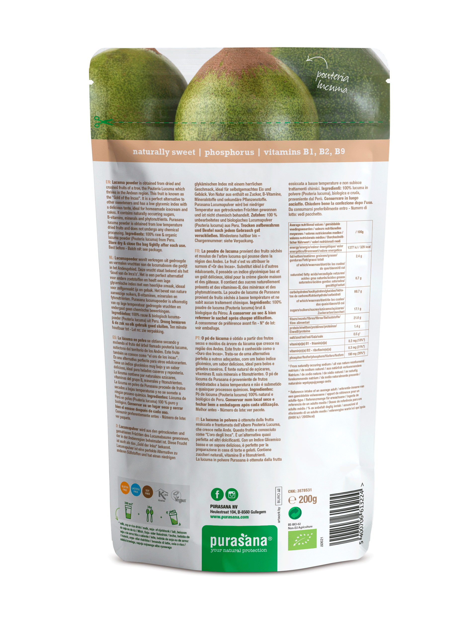 Purasana Lucuma Powder is made from 100% organic lucuma fruit, known as "Gold of the Incas" for its prized status in ancient Peruvian culture.