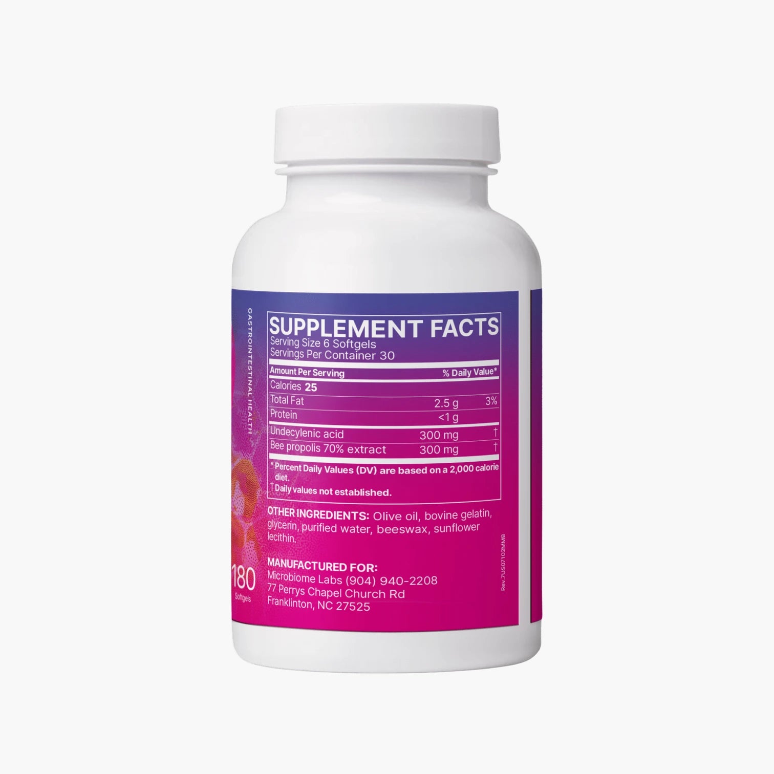 Professional-grade yeast and fungal balance supplement formulated with undecylenic acid and bee propolis to support healthy gut flora