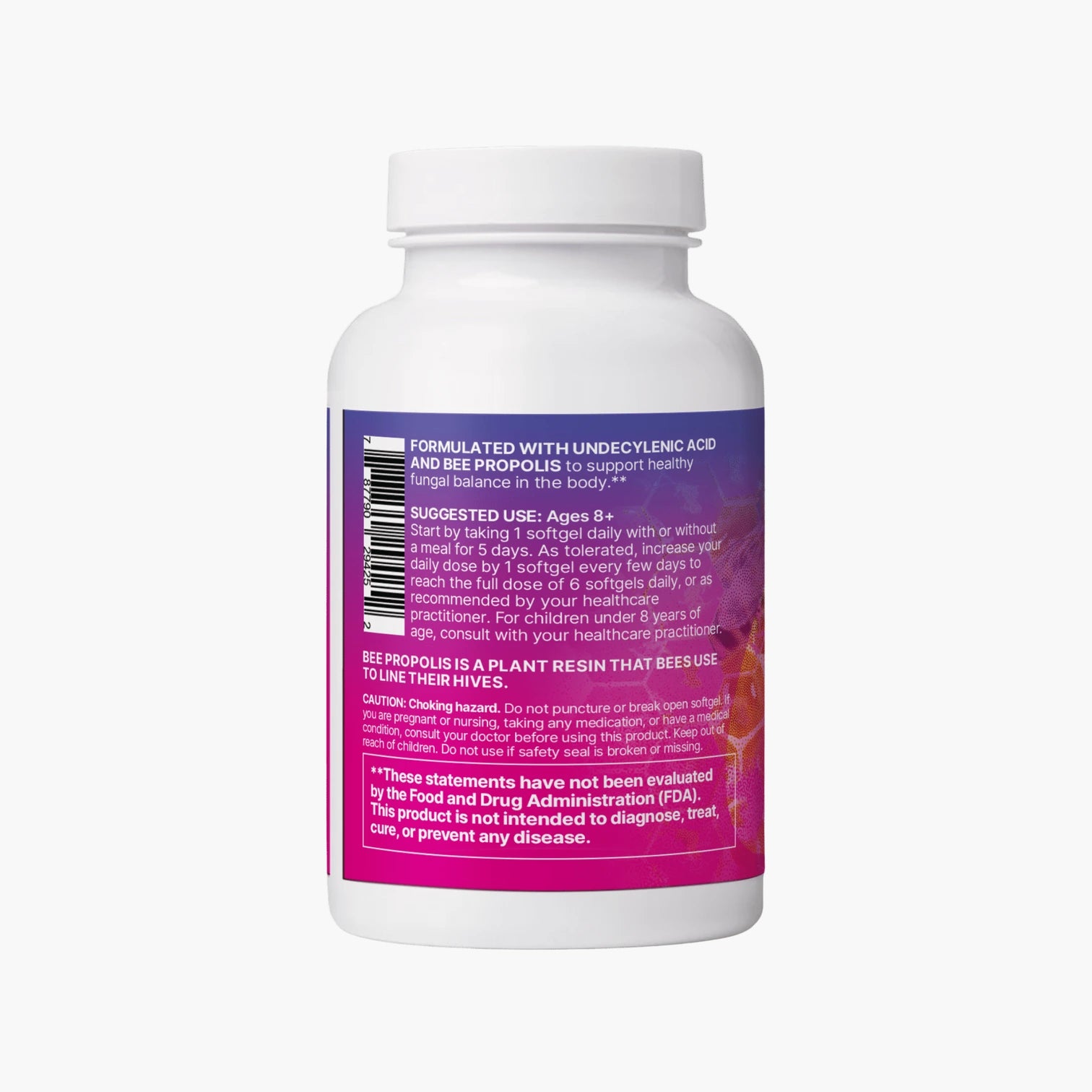 This professional supplement combines two powerful natural ingredients: undecylenic acid (from castor bean oil) and bee propolis (a protective resin bees make for their hives).