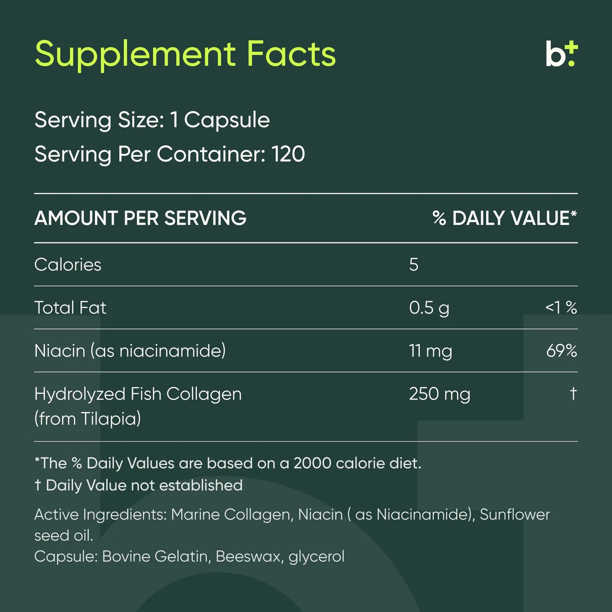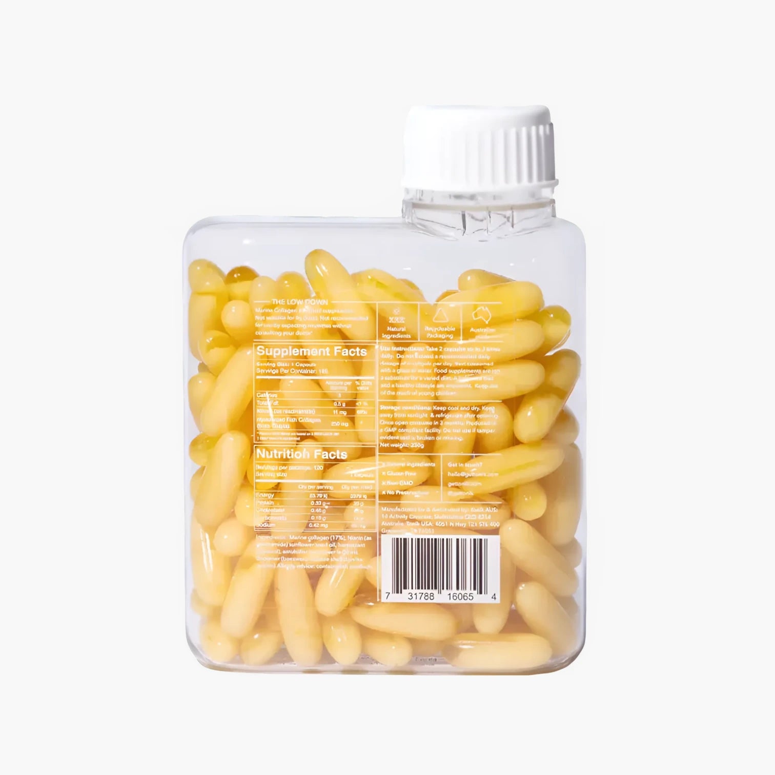 Pure marine collagen capsules with superior bioavailability. Delivers concentrated nutrients for enhanced wellness without fishy taste or smell.