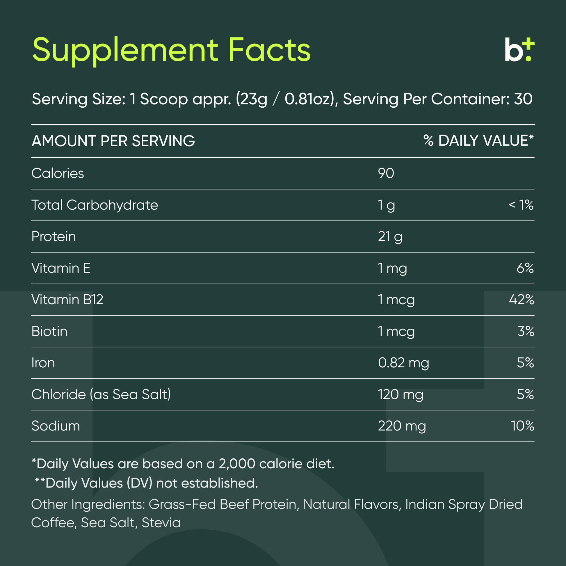 Clean beef protein isolate from grass-fed cattle with collagen and gelatin. 21g complete protein per scoop with no fillers or additives.
