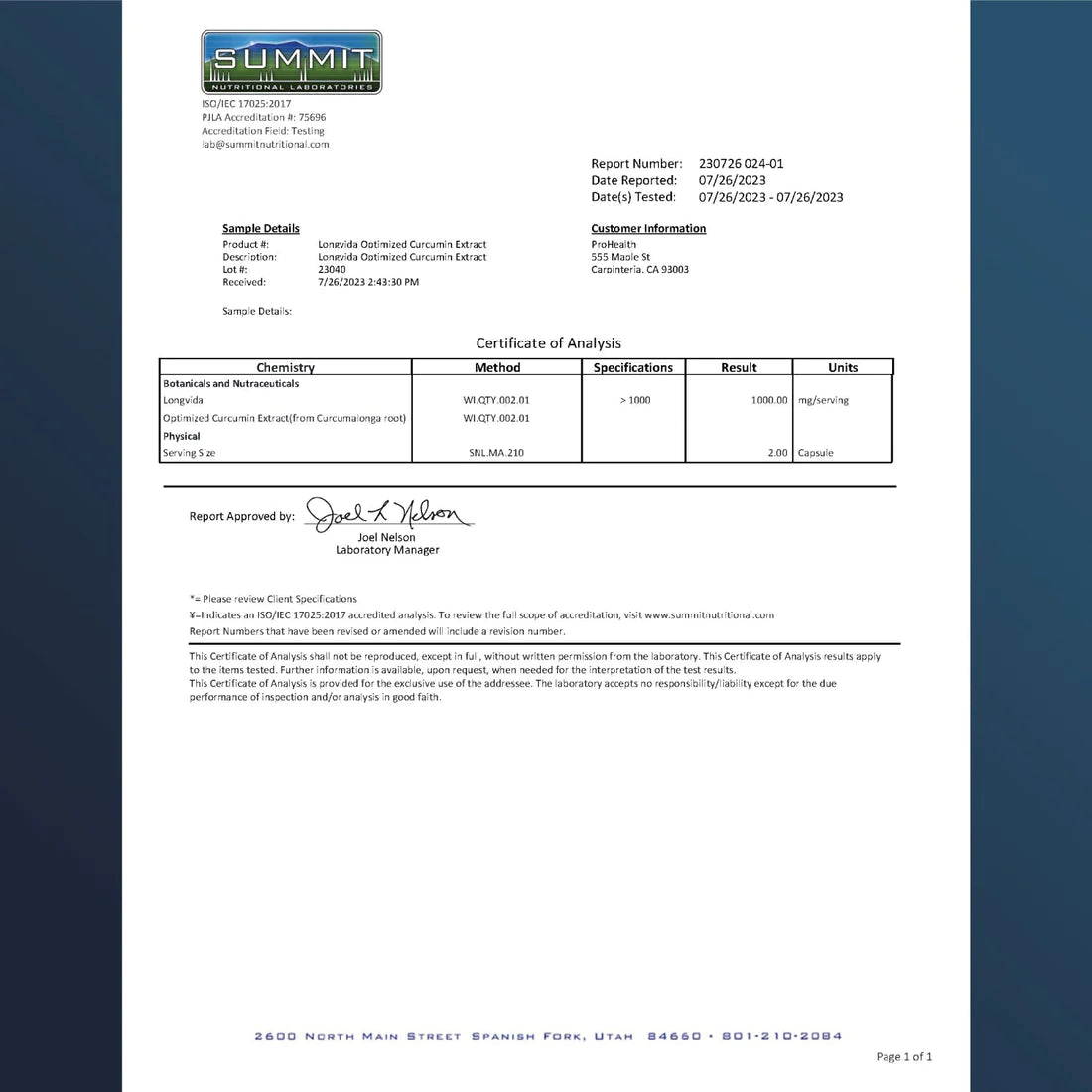 Prohealth - Optimized Curcumin Longvida® Tablets is a finely-tuned matrix of ingredients brought together in a gentle multi-step process. The end product is precisely set in a way that preserves and protects the curcumin from the harsh environment of the stomach, dissolves at the point of absorption in the GI tract, and helps the free form of curcumin cross into the bloodstream and target tissues.